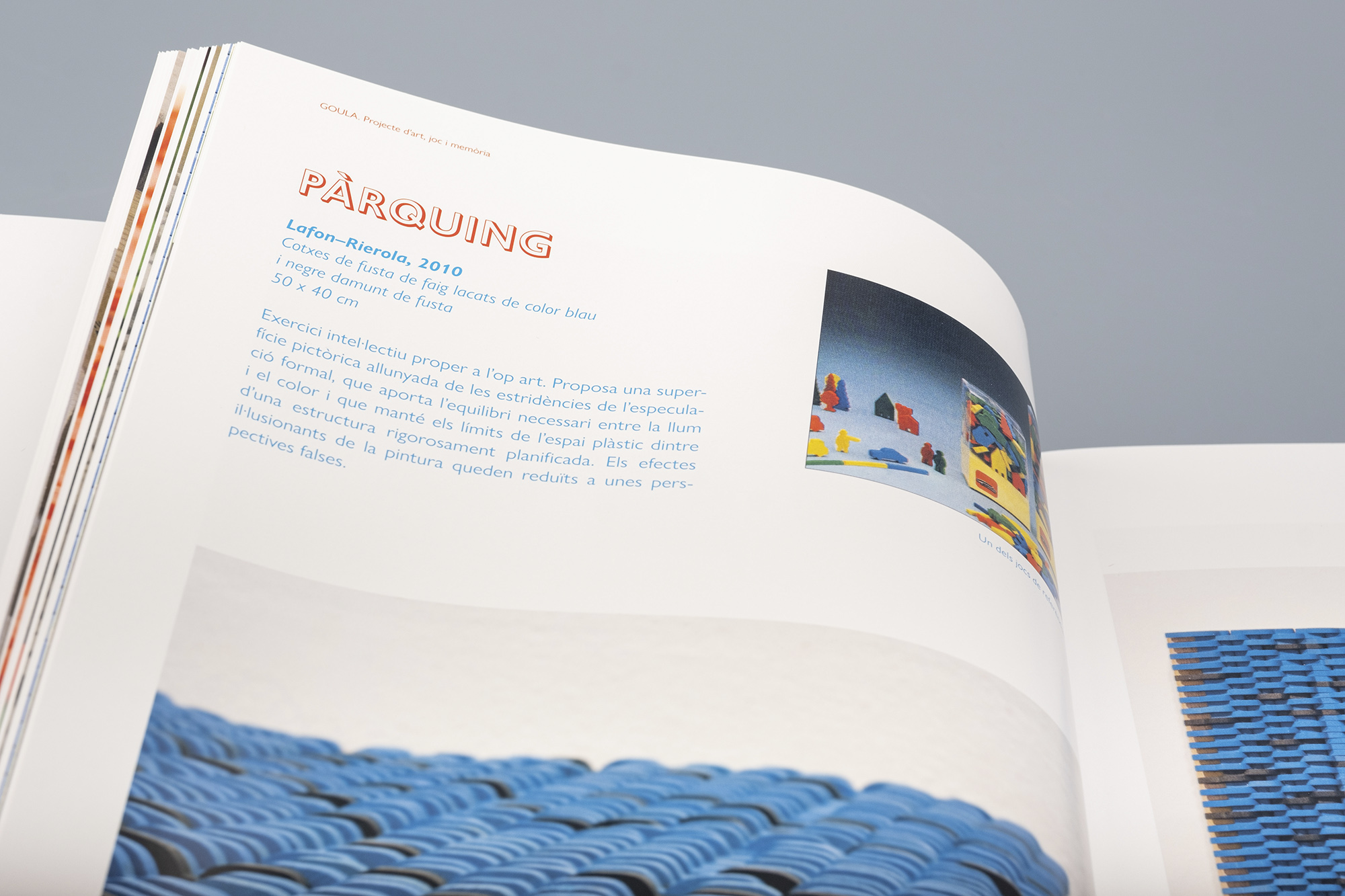 Diseño de un catálogo que da continuidad a la imagen que creamos para representar el proyecto de Goula, con una clara voluntad de mostrar la exposición y todo el proceso que ha llevado hasta ella.